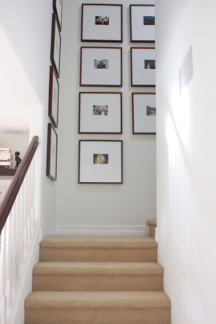 We will have a skinny wall between two doors in the living room that I'm thinking something like this chic monochromatic gallery would look good.